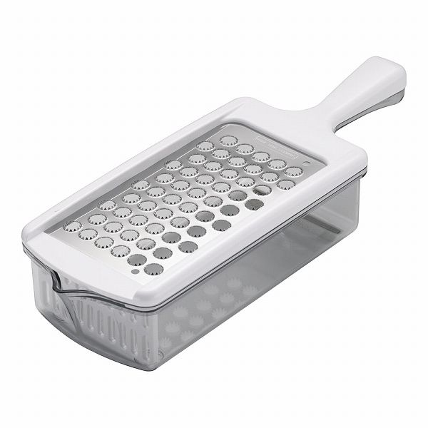 材質:刃部/ステンレス、受皿/AS樹脂(耐熱70℃)、すべり止め/エラストマー樹脂(耐熱80℃)、おろし枠/ABS樹脂(耐熱80℃)