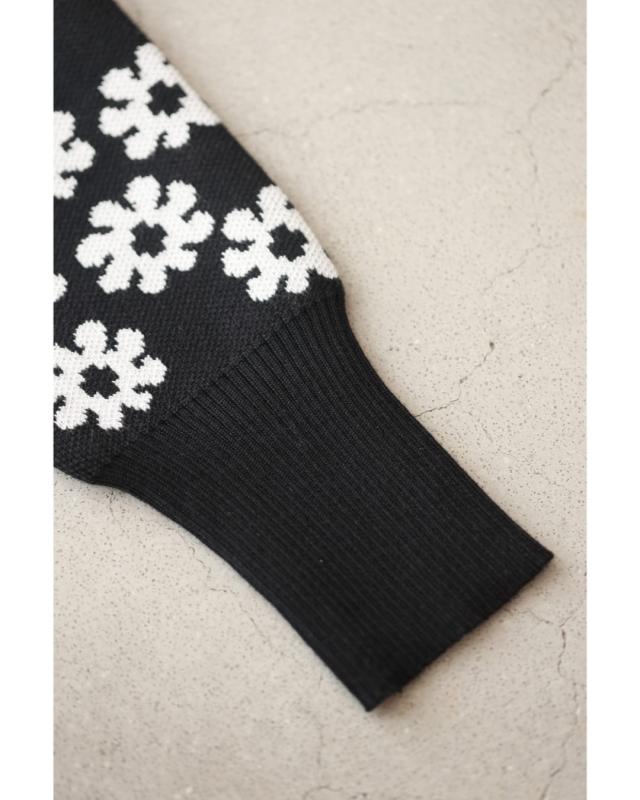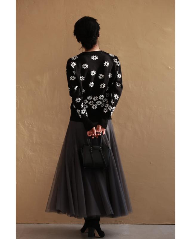再入荷11月5日 (黒)降り積もる白花のニットカーディガン トップス カーディガン レディース ファッション 秋服 冬服 着回し 重ね着 レイヤード cawaii w50488nc ブラック 日常使い キレイめ シンプル ミセス 30代 40代 50代