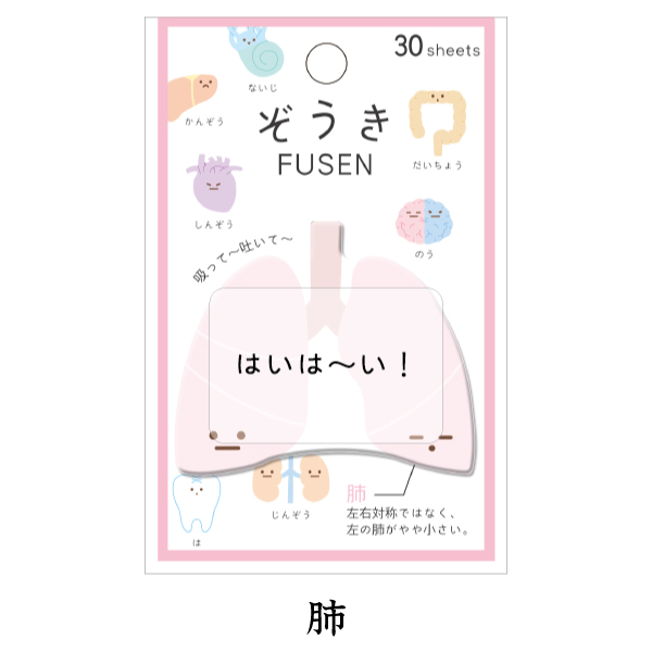 ぞうきFUSEN 肺 1個30枚(約縦75×横62mm) 付箋 おもしろ 臓器 キャラクター