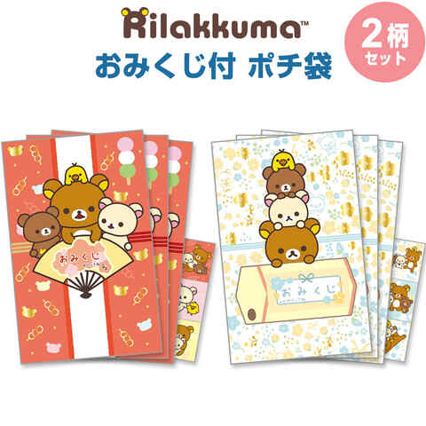 ポチ袋 ぽち袋 リラックマ おみくじ付 各3枚入 2柄セット ホログラムシール付 金箔押し 三つ折り お年玉 正月 サンエックス 送料無料