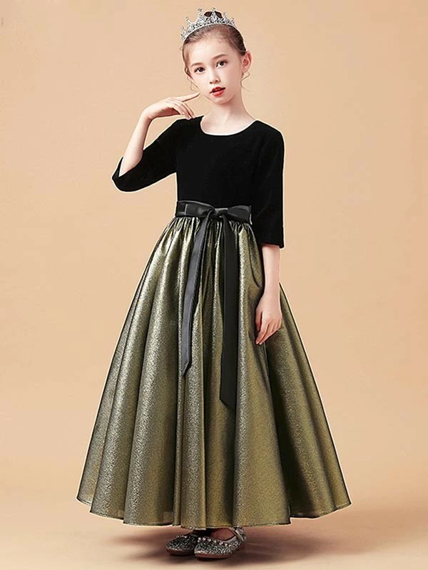 ピアノ発表会 ドレス 中学生 ワンピース ジュニアドレス 七五三 キッズドレス 子供ドレス 五分袖 かわいい お姫様 ベルベット エレガント 女の子 結婚式 フォーマル 大人っぽい 誕生日 フレアスカート ロング丈