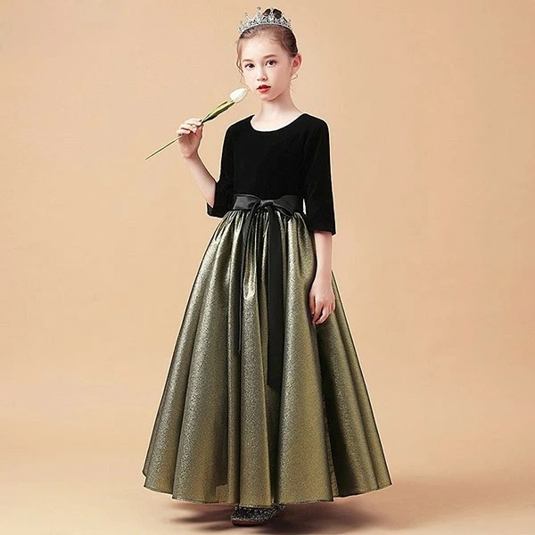ピアノ発表会 ドレス 中学生 ワンピース ジュニアドレス 七五三 キッズドレス 子供ドレス 五分袖 かわいい お姫様 ベルベット エレガント 女の子 結婚式 フォーマル 大人っぽい 誕生日 フレアスカート コンクール衣装 ロング丈 演奏会 da010sasah5 da010sa