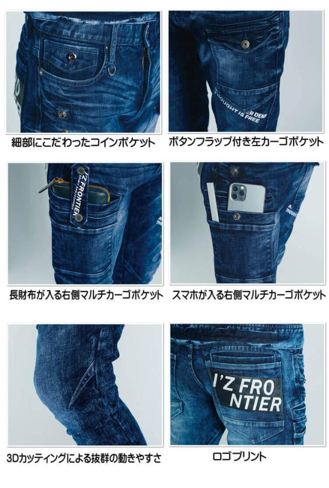 アイズフロンティア ストレッチ3Dデニムカーゴパンツ 7352 ヴィンテージブルー 通年作業服