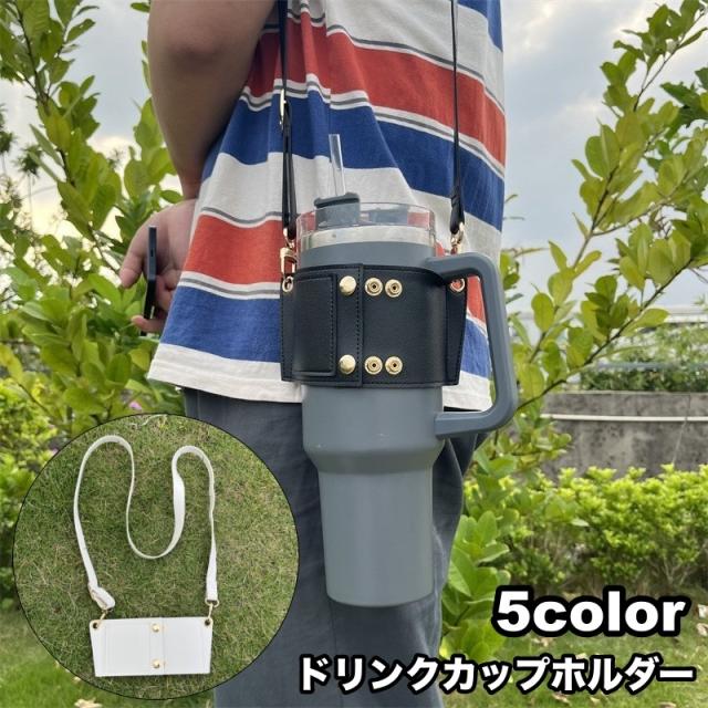 ドリンクカップホルダー ドリンクホルダー ボトルホルダー レザー調 ストラップ付き 持ち歩き 持ち運び テイクアウト コーヒーカ