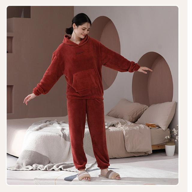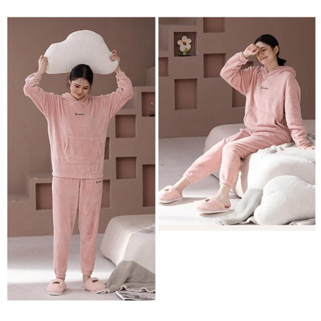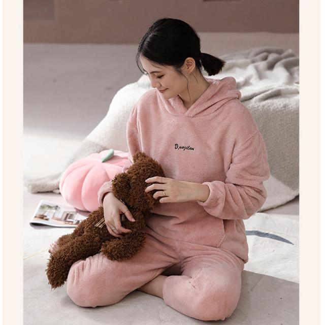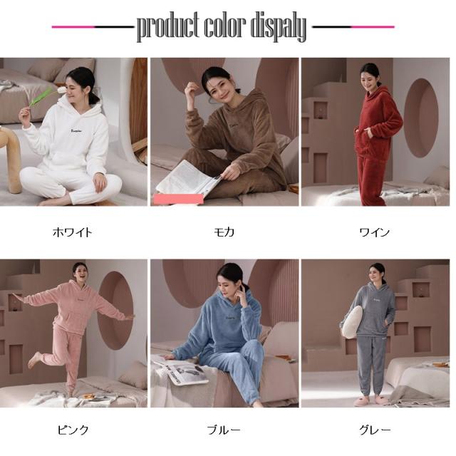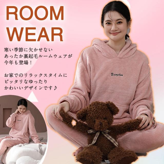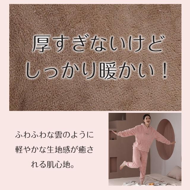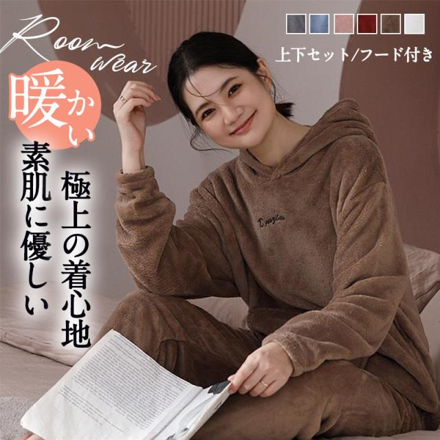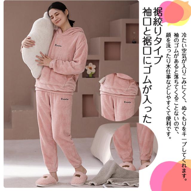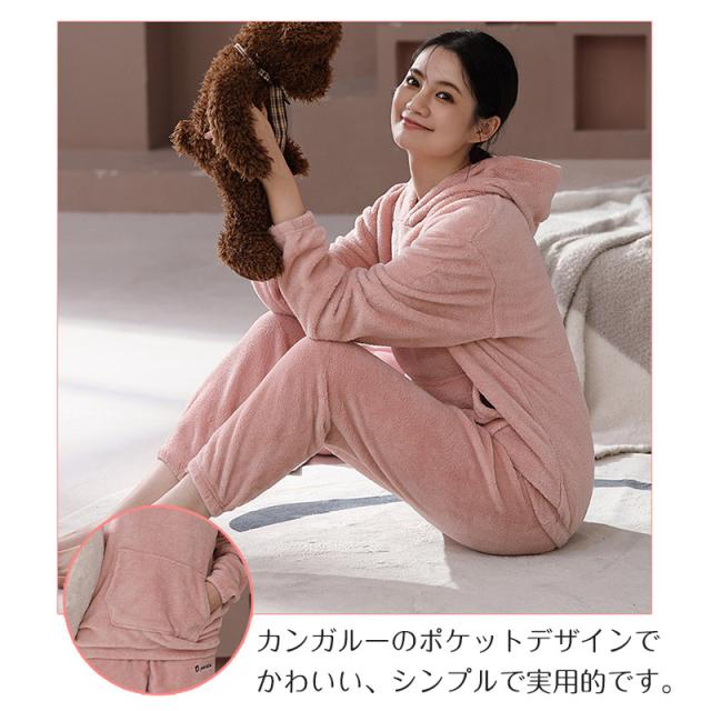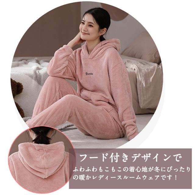 パジャマ レディース ルームウエア フード付き 部屋着 ナイトウエア 上下セット 長袖 秋冬 フリースパジャマ 裏起毛 厚手 ふんわり ふわふわ
