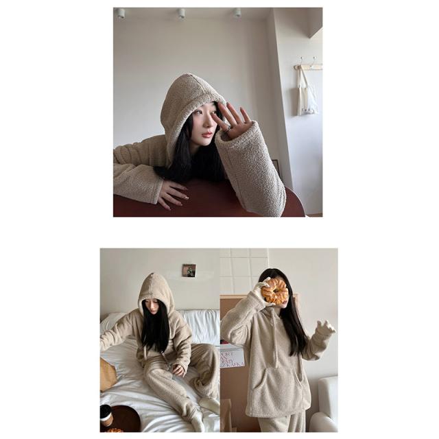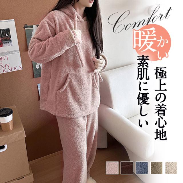 パジャマ レディース ルームウエア フード付き 部屋着 ナイトウエア 上下セット 長袖 秋冬 フリースパジャマ 裏起毛 厚手 ふんわり ふわふわ
