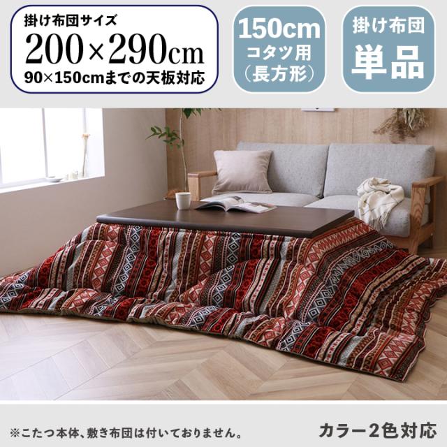掛け布団単品 / 適応こたつサイズ幅150cmまで MNFS 日本製 こたつ布団 掛布団 厚掛け 幅200 奥行290 cm (長方形) ポリエステル カラー2色対応 国産 フランネル生地 カラフル エスニック