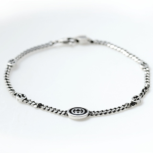 グッチ ブレスレット メンズ ブランド インターロッキングG アクセサリー チェーン 喜平 シルバー925 678657 J8410 8191 GUCCI シルバー ◆1921年、グッチオ・グッチは革製品の会社を起業し、フィレンツェに小さな鞄店を開業。ブランドに対する彼のビジョンは、ロンドンと、彼がサボイ・ホテルで働いていた時に見た英国貴族の洗練された審美眼から培われたものです。財布や革製品以外にもアクセサリーや腕時計も品質の高さや、洗練されたデザインが人気で一気に高級ブランドの地位を確立しました。今では名を知らない人はいないぐらい世界的に有名なブランドです。 ブランドロゴをかたどったGモチーフは存在感抜群。その日のファッションや気分に合わせたコーディネートをお楽しみいただけます。プレゼントにもおすすめです。
