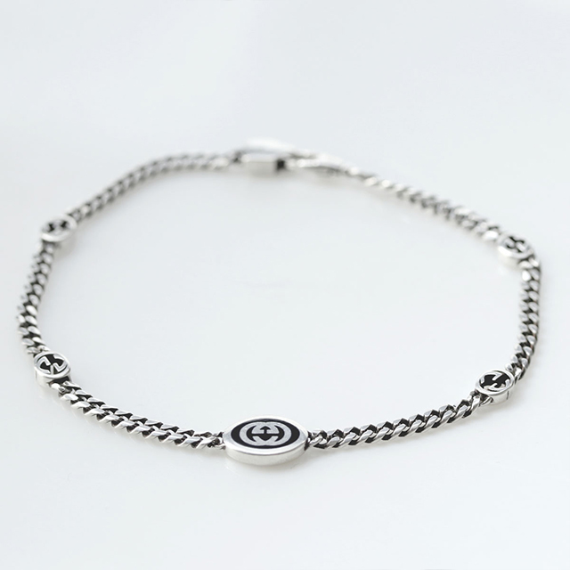 グッチ ブレスレット メンズ ブランド インターロッキングG アクセサリー チェーン 喜平 シルバー925 678657 J8410 8191 GUCCI シルバー ◆1921年、グッチオ・グッチは革製品の会社を起業し、フィレンツェに小さな鞄店を開業。ブランドに対する彼のビジョンは、ロンドンと、彼がサボイ・ホテルで働いていた時に見た英国貴族の洗練された審美眼から培われたものです。財布や革製品以外にもアクセサリーや腕時計も品質の高さや、洗練されたデザインが人気で一気に高級ブランドの地位を確立しました。今では名を知らない人はいないぐらい世界的に有名なブランドです。 ブランドロゴをかたどったGモチーフは存在感抜群。その日のファッションや気分に合わせたコーディネートをお楽しみいただけます。プレゼントにもおすすめです。