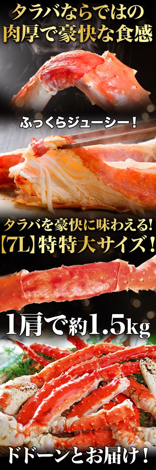 | ・7L 特特大2.5kg (正味重量2kg)×2肩 ・空気に触れることによる乾燥や酸化を防ぐため氷の被膜をつけてお届けいたします。 ・( )内の正味重量(正味)とは、氷の被膜をつける前のカニ正味の重量です。 ・商品のラベルにはカニ正味の重量を記載しています。 |