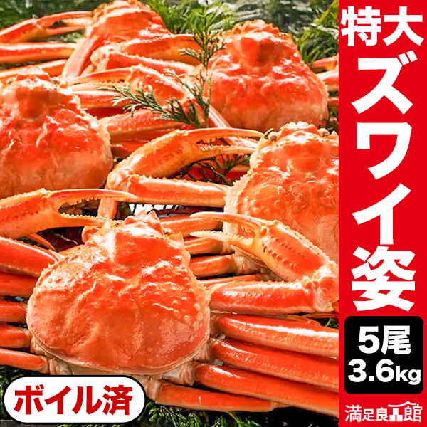 【お値引きクーポン配布中】3.6kg 5尾 特大ズワイガニ姿 ボイル済 かに カニ 蟹 ずわい蟹 姿 かにみそ ずわいがに 満足良品館 全国送料無料