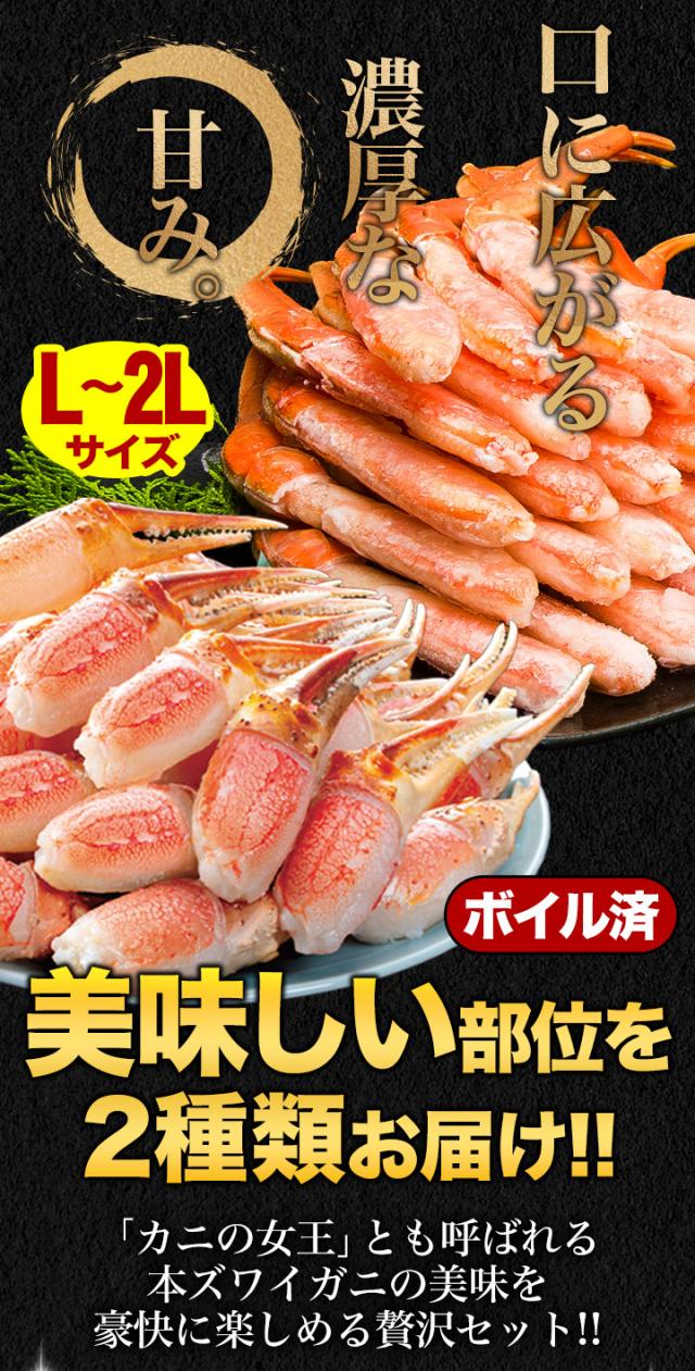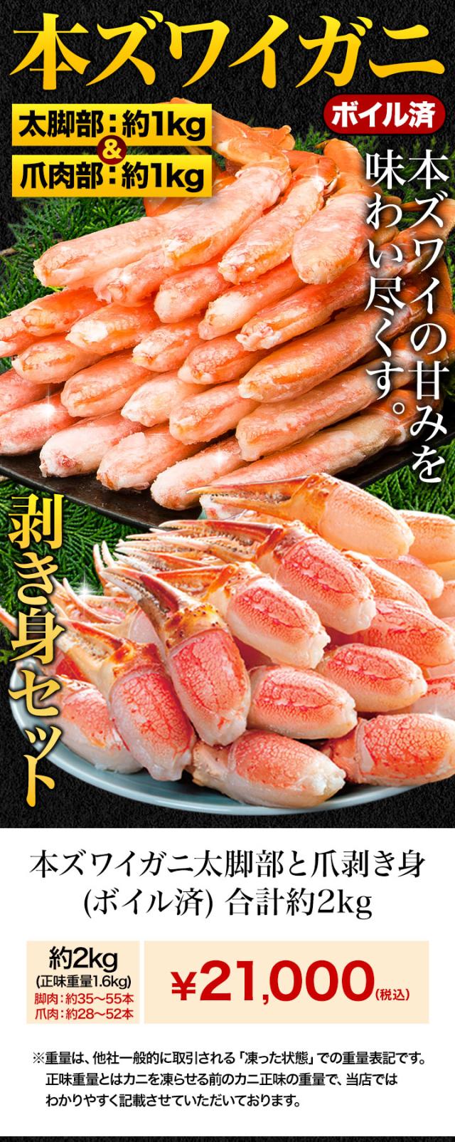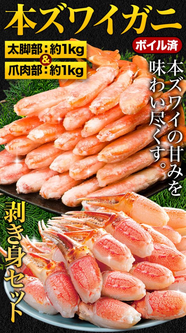 | 名称 | 本ズワイガニ太脚部と爪剥き身 |