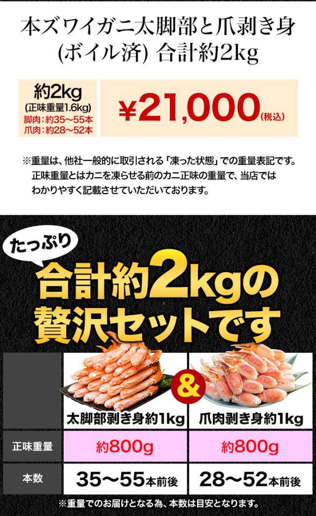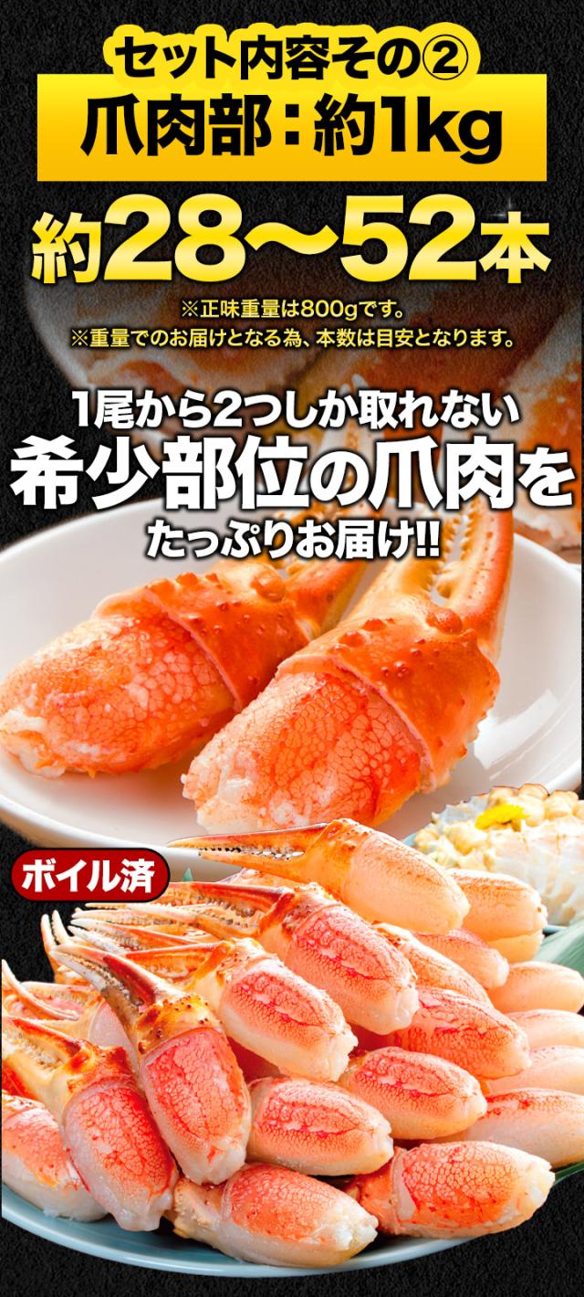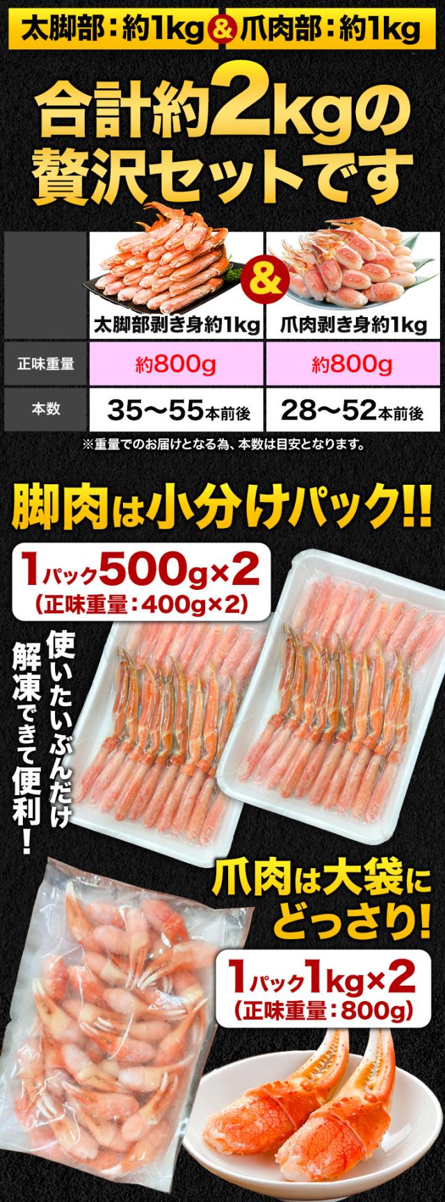 【お値引きクーポン配布中】2kg 本ズワイガニ太脚部と爪剥き身 カニ爪 かに カニ 蟹 かに鍋 ボイル 太脚 足 脚肉 満足良品館 全国送料無料