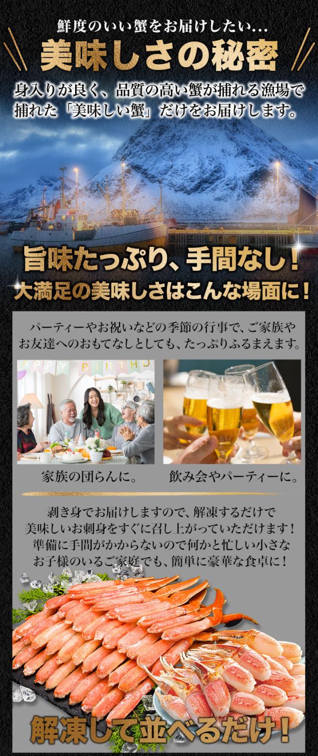【その他】かに 蟹 カニ ズワイガニ ずわいがに ズワイ蟹 ずわい蟹 ズワイ 本ズワイガニ 本ずわいがに 本ずわい 本ズワイ 松葉ガニ 松葉蟹 松葉がにせこがに せいこがに こっぺがに 香箱がに セコガニ セイコガニ コッペガニ 越前ガニ 越前がに 越前かに 越前蟹紅ずわいがに 紅ズワイガニ 紅ずわい蟹 紅ズワイ蟹 紅ずわい 紅ズワイ 紅かに 紅カニ 紅蟹タラバガニ たらばがに たらば蟹 タラバ蟹 キングクラブ レッドキングクラブ ゴールデンキングクラブ いばらがに いばらがにもどき 毛蟹 けがに 毛ガニ ケガニ 花咲がに 花咲ガニ 花咲蟹 はなさきがに ハナサキガニ イバラガニ イバラガニモドキ かに刺し カニ刺し 蟹刺し お刺身 刺身 生食 生蟹 生カニ 生かに ポーション 棒肉 脚肉 足肉 肩肉 爪 かに爪 カニ爪 蟹爪 かにしゃぶ かにすき 蟹しゃぶ 蟹すき 蟹鍋 かに鍋 カニ鍋 焼きガニ 焼き蟹 焼きがに 天ぷら コロッケ グラタン パスタ 雑炊 味噌汁 カニ汁 かに汁 蟹汁剥き身 殻付き 殻 殻剥き 半剥き身 ボイル ボイル済み 冷凍 冷蔵 解凍 パック 箱 ボックス セット 詰め合わせ 福袋
