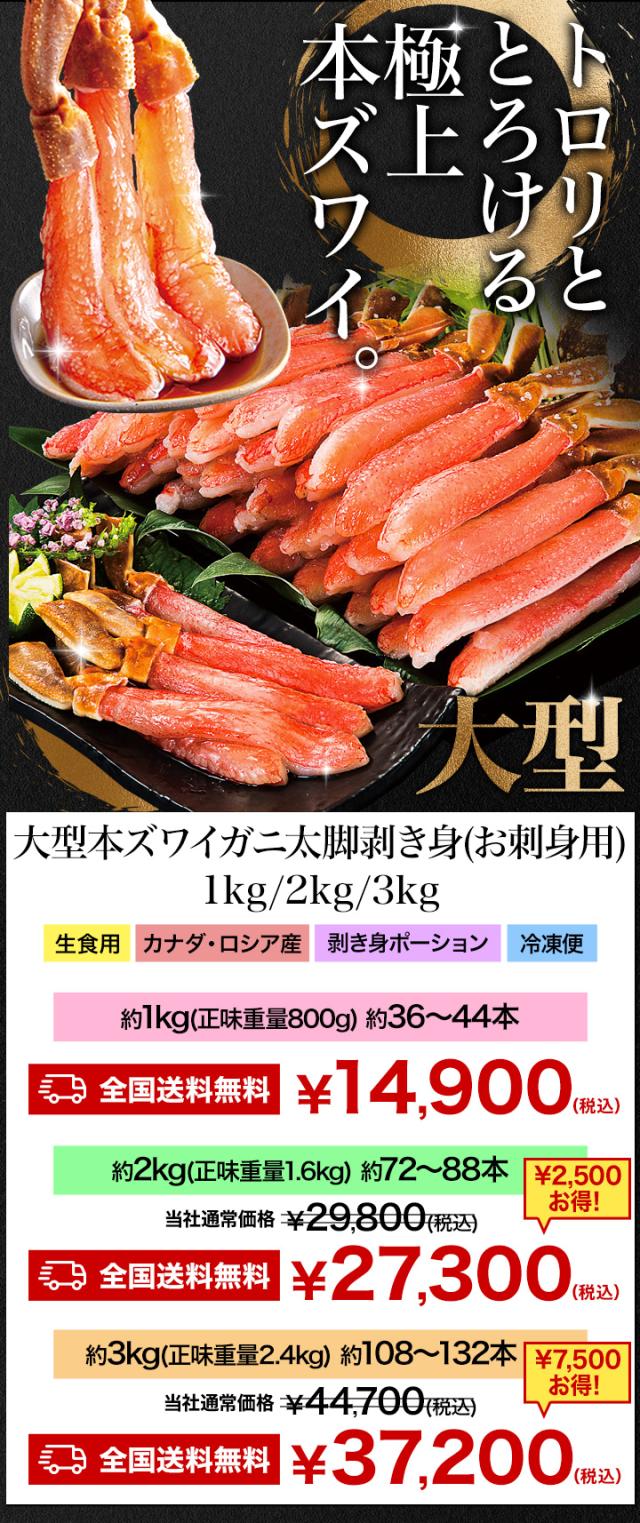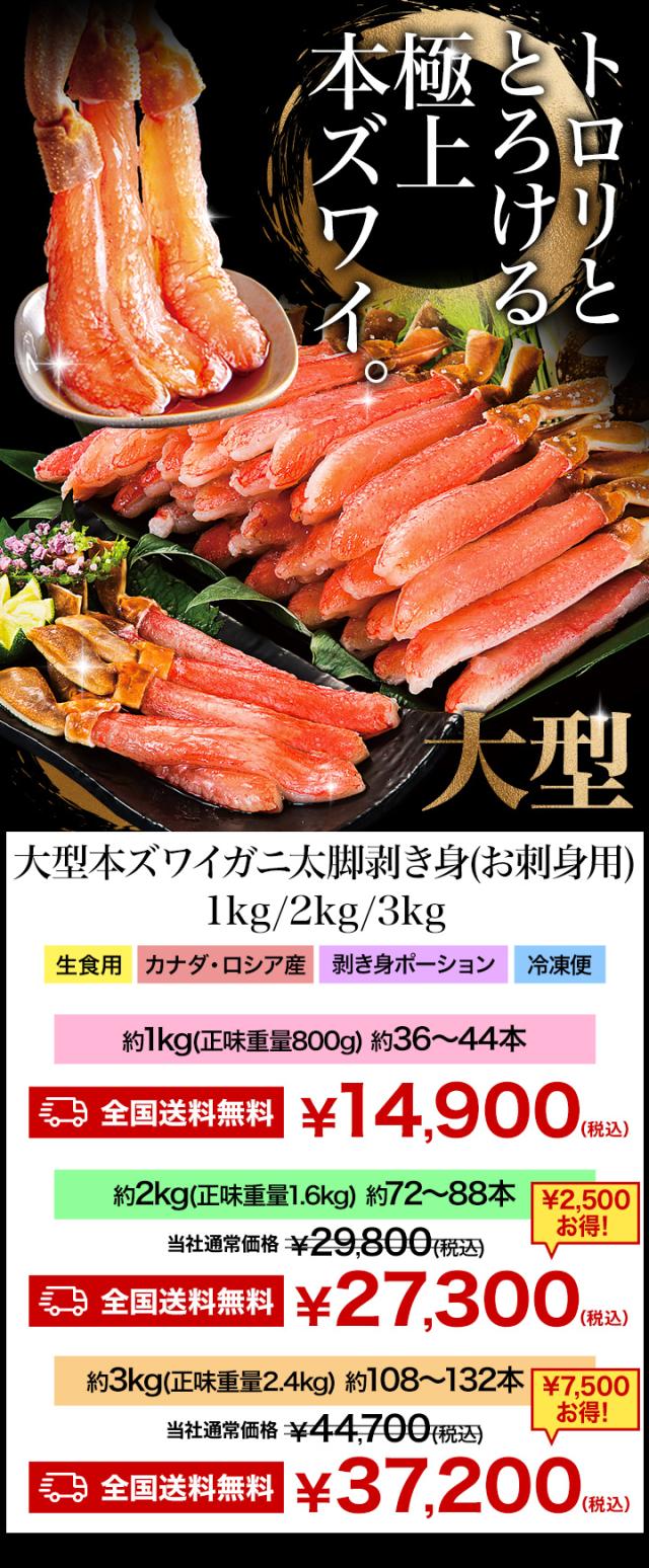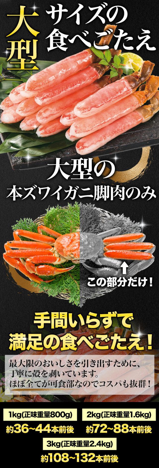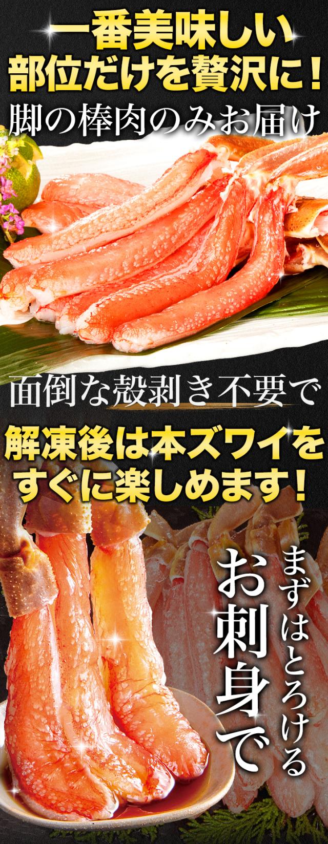【お値引きクーポン配布中】3kg 大型本ズワイガニ太脚剥き身(お刺身用)ズワイ 本ズワイ むき身 お刺身 海鮮 満足良品館 全国送料無料