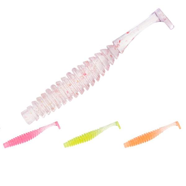 ●ムーブビームはシャッドテールの大きさを最小限に留め、逆リブボディ形状による複雑な水絡みでスローフォールを実現。
