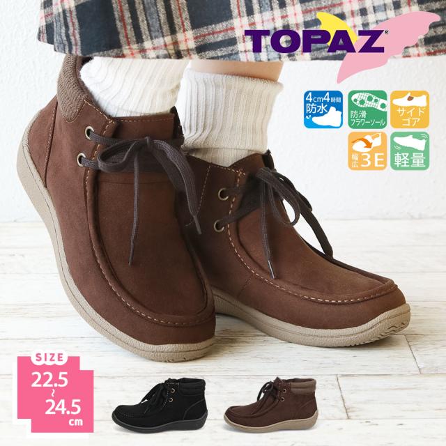 トパーズ ショートブーツ レディース 歩きやすい 防水 防寒 防滑 軽量 幅広 3e スエード ブーティ ローヒール 防寒 軽い 暖かい あったか 裏起毛 レースアップ スノーシューズ レインブーツ レインシューズ 履きやすい ブーツ 黒 ブラック ブラウン 2302