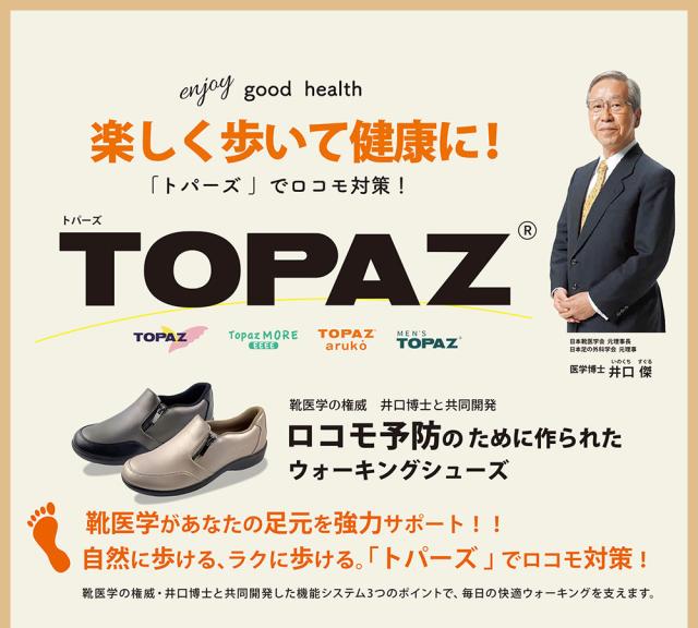 「トパーズ」のシューズは、靴医学の権威である井口博士(日本靴医学会元理事長・日本足の外科学会 元理事)が監修しています。