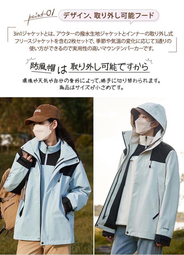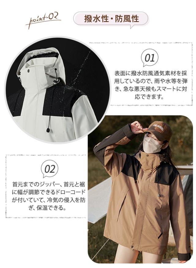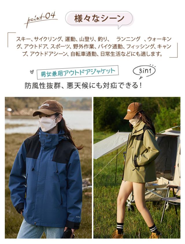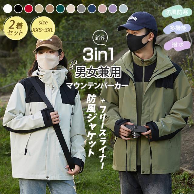 新作 マウンテンパーカー レディース メンズ ハードシェルジャケット3in1 防風 防寒 アウトドア ジャケット 多機能 アウター ジャンパー 男女兼用 秋冬用 防寒着 ブルゾン 裏ボア 保温 撥水性 登山ジャケット 裏起毛 フード付 ウインドブレーカー 作業着