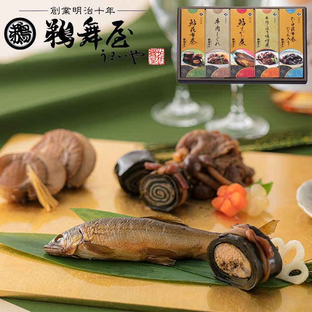 ●鮎昆布巻190g、牛肉しぐれ70g、鮎すがた煮75g、牛肉ごぼう味噌煮70g、一口昆布巻にしん入り100g