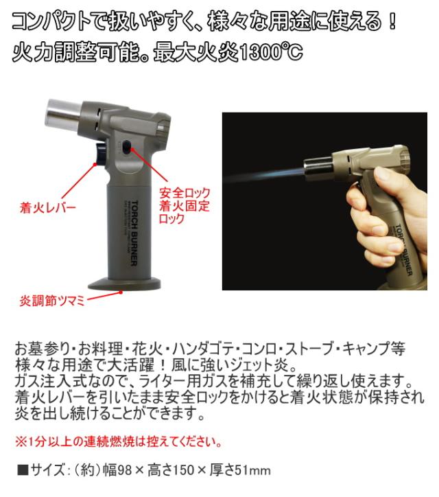 トーチバーナー TK-SF11 バーナー ガス注入式 お墓参り 線香 ジェット炎 高火力 花火 アウトドア カーキ 高森コーキ