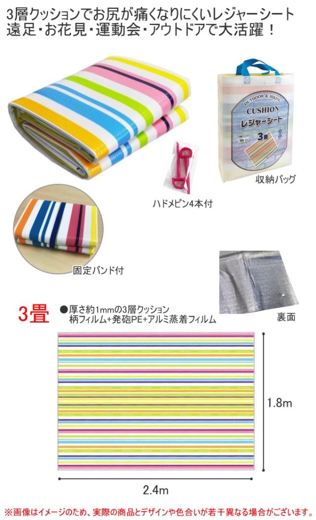 クッションシート天の川 3畳 180×240cm PS-30 3層クッション 手提げ袋付き ハドメピン ストライプ柄 プラテック