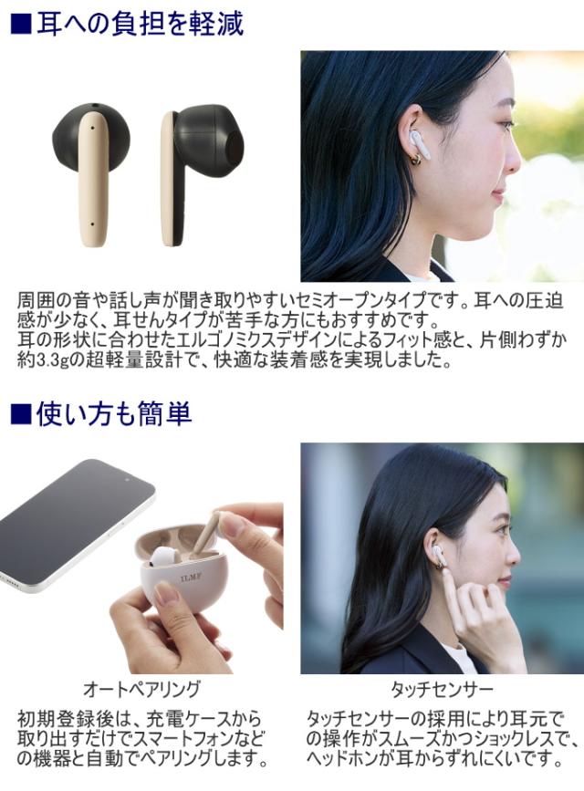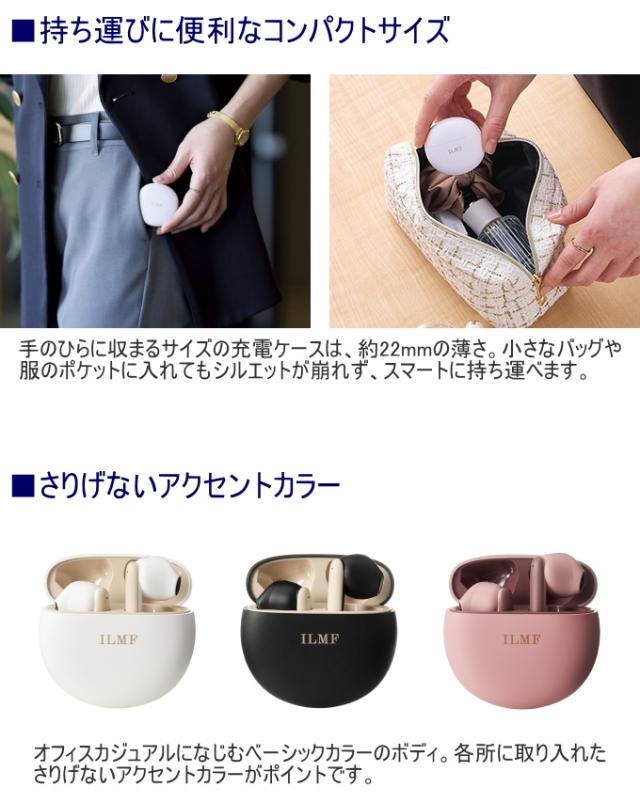 ILMF 完全ワイヤレスBluetoothヘッドホン イヤホン 軽量 コンパクト 音楽 エレコム ブラック ホワイト ピンク