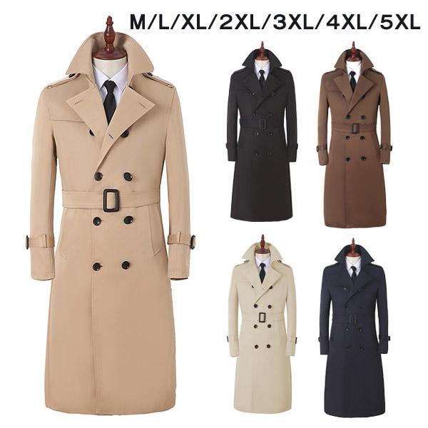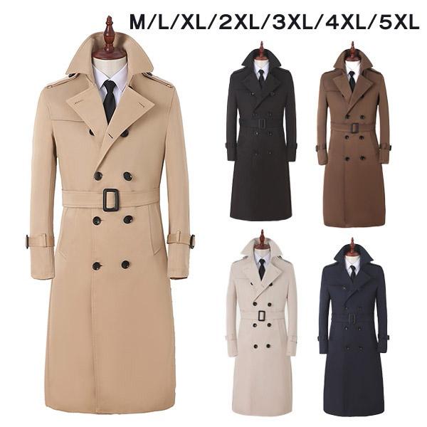 ロング トレンチコート メンズ ロングコート 男性用 春コート スプリングコート ビジネス フォーマル 春秋コート メンズコート 防風 アウター 大きいサイズ スリム 冬服 ブラック 無地 長袖 M/L/XL/2XL/3XL/4XL/5XL