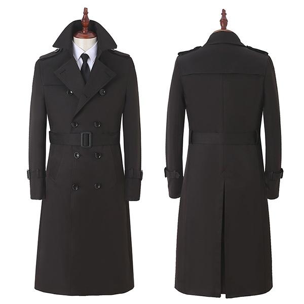 ロング トレンチコート メンズ ロングコート 男性用 春コート スプリングコート ビジネス フォーマル 春秋コート メンズコート 防風 アウター 大きいサイズ スリム 冬服 ブラック 無地 長袖 M/L/XL/2XL/3XL/4XL/5XL dg079x1x1m5