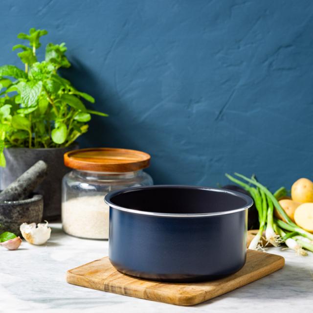 セラミックコーティングだからできる明るいカラーリングは、キッチンを華やかに演出します。シンプルなデザインで食卓にも馴染むため、調理後はハンドルを外してそのまま食卓へサーブするのもおすすめです。