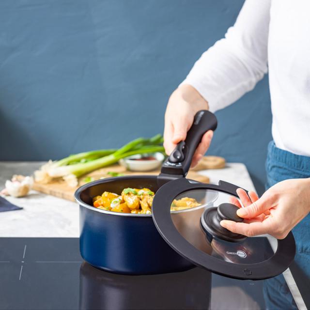 有害物質を一切使用していない調理器具の開発を手掛けるGreenPan(グリーンパン)のハンドルが取り外せるクリックシェフコレクションのソースパン20cm。大きめなサイズなので数人分のスープなどを作るのにも便利です。ハンドルを外せばオーブンでケーキを焼くこともできます。