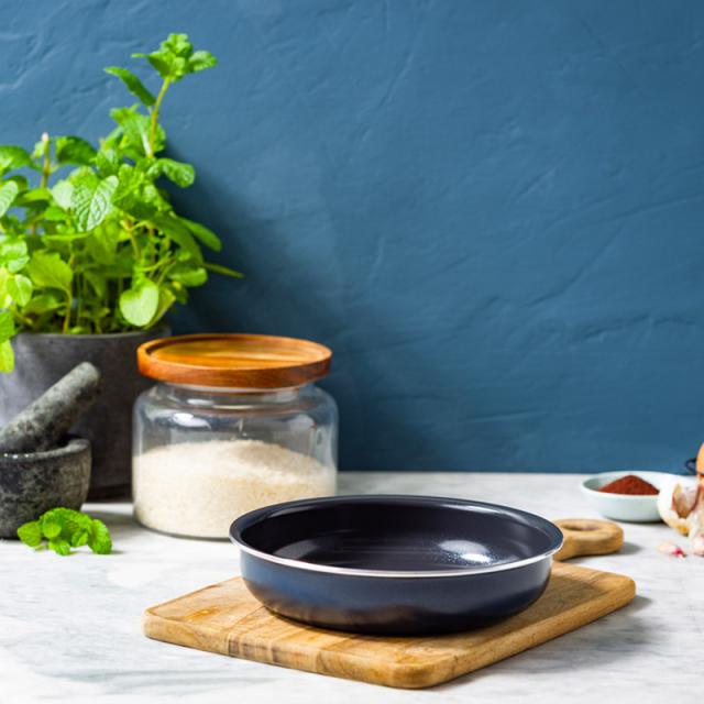 セラミックコーティングだからできる明るいカラーリングは、キッチンを華やかに演出します。シンプルなデザインで食卓にも馴染むため、調理後はハンドルを外してそのまま食卓へサーブするのもおすすめです。