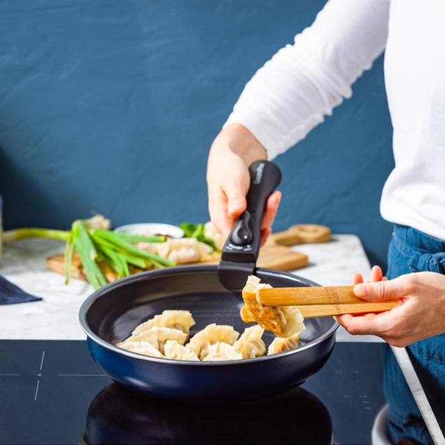 有害物質を含まないのに焦げ付きにくい、ハンドルが取り外せる安心加工のフライパン。