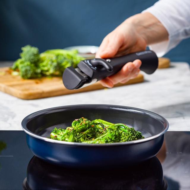 有害物質を一切使用していない調理器具の開発を手掛けるGreenPan(グリーンパン)のハンドルが取り外せるクリックシェフコレクションのフライパン。炒め物や焼き物など幅広いお料理に使える万能な26cmサイズです。