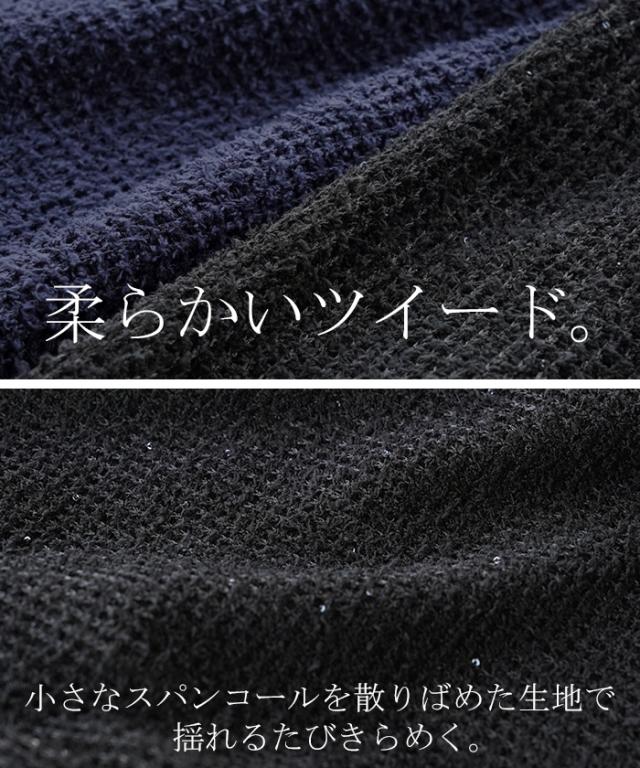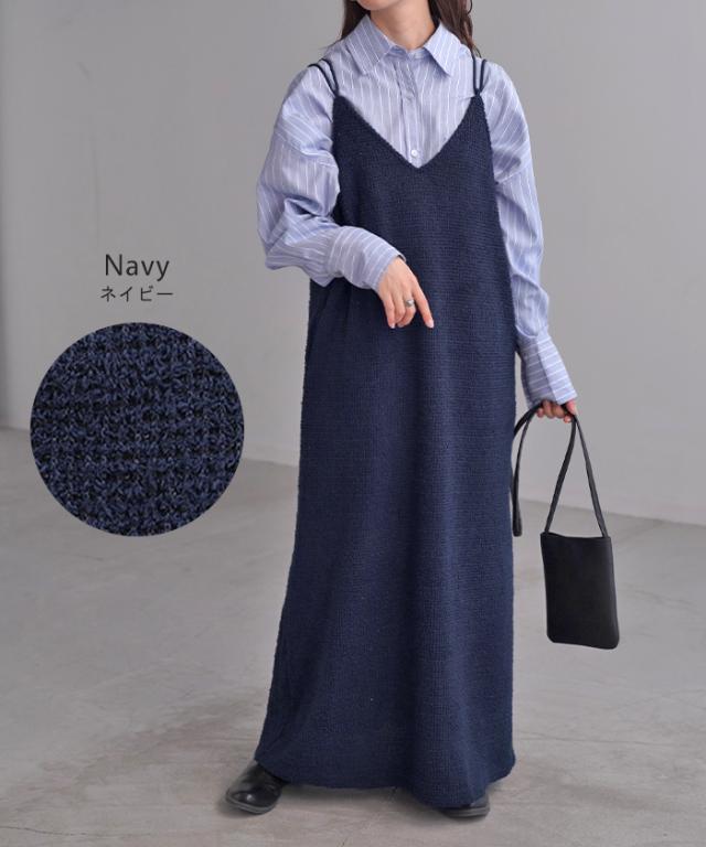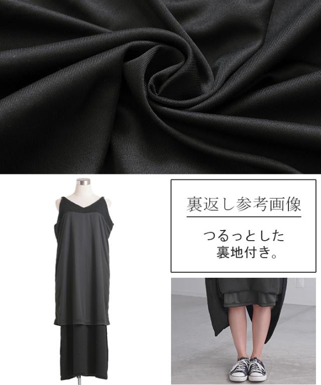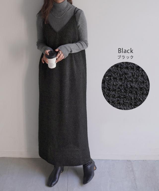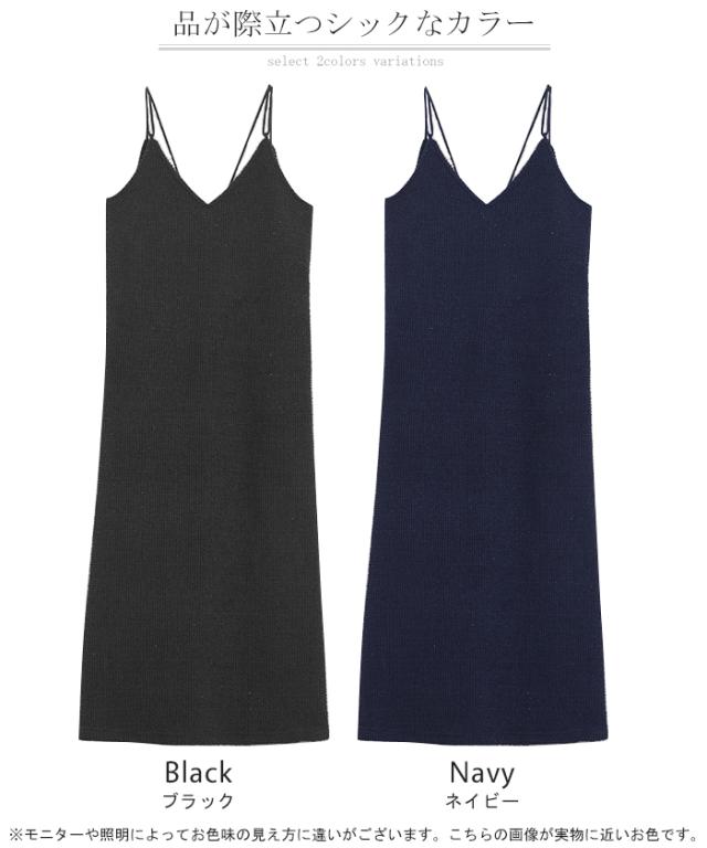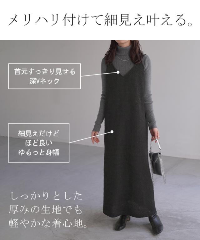 ワンピース キャミソール ロング トップス レディース キャミワンピ マキシ ツイード スパンコール スリット 裏地 ストレッチ Iライン レイヤード ポケット 無地 Vネック ノースリーブ 大きいサイズ 体型カバー 大人 きれいめ 上品 黒 ブルー 秋 冬 HUG.U 秋新作