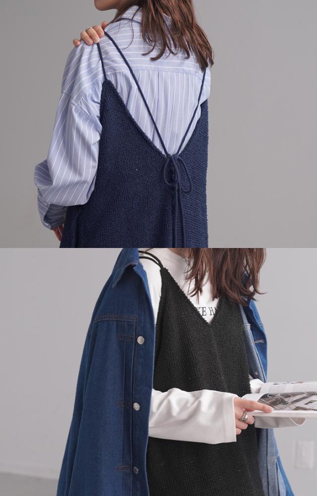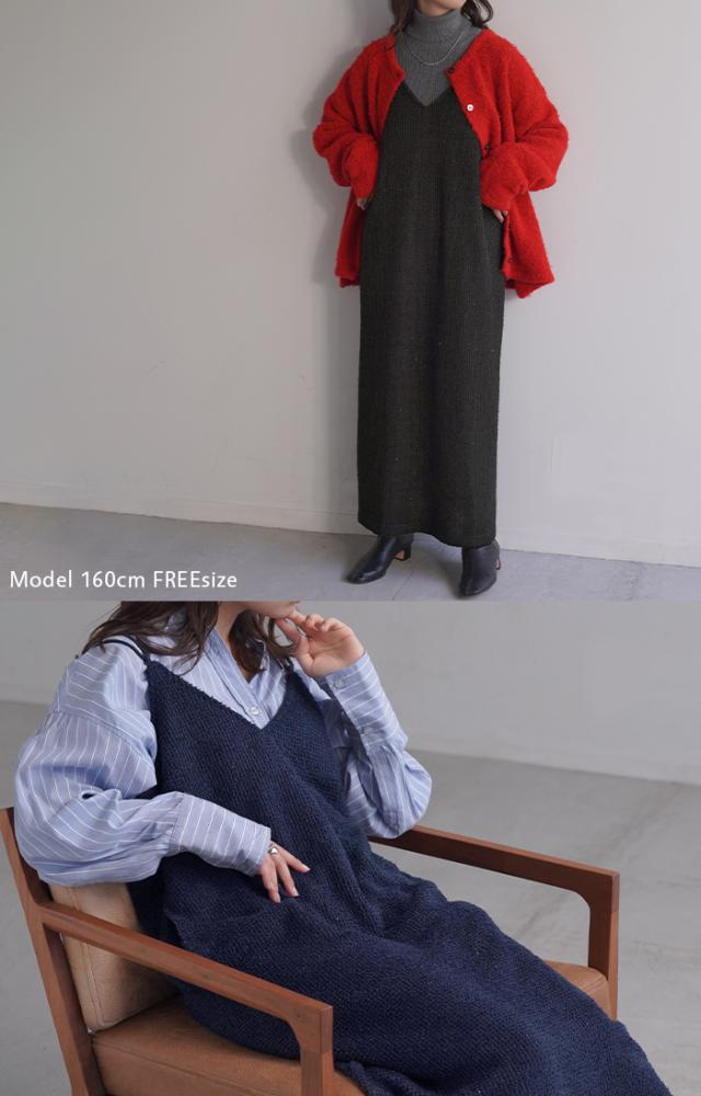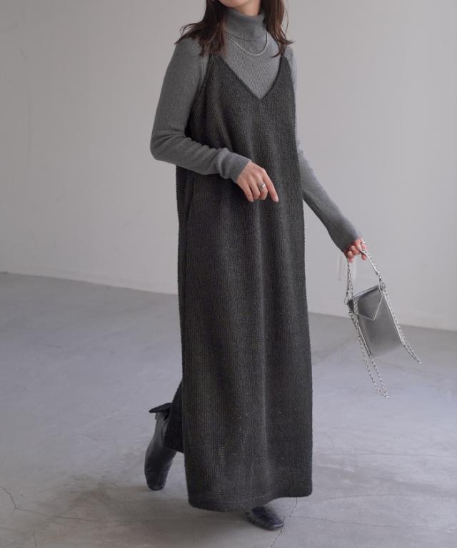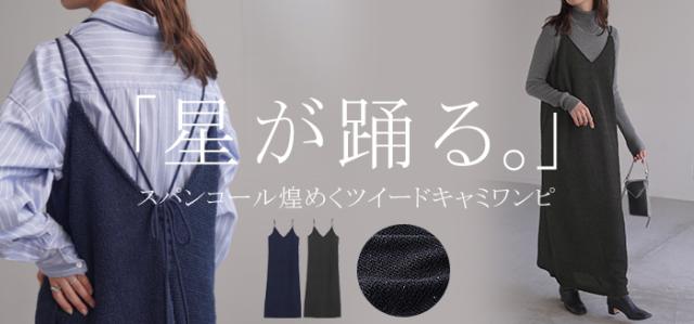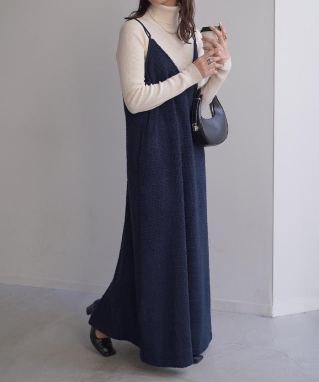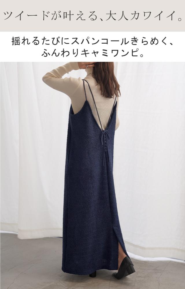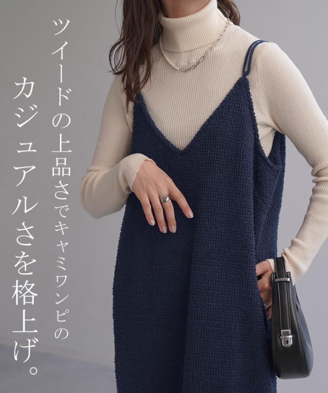 ツイード調の素材感がこなれた雰囲気のキャミワンピ−スです。