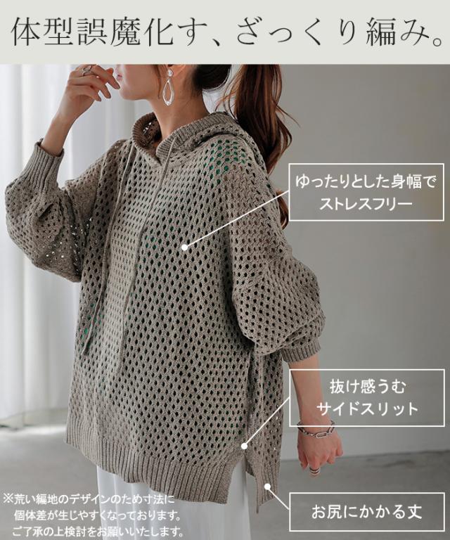 サマーニット メッシュニット ざっくり ざっくりニット ルーズ ニットパーカ ビッグニット ビックニット オーバーニット ナチュラル 透かし編みニット 透かし 編み 透かし編みニットパーカー かぎ針 かぎ針ニット かぎ編みニットパーカー レイヤードニット リブニット ライトニット ニットウェア ニットウエア ニットプルオーバー カットソー フード付き フーディー フーディ フーディーアウター パーカー パーカ 無地 チクチクしない ちくちくしない ビ切り替え 切り替えデザイン 切り替えリブ ちくちくしない 柔らかい 袖口リブ リブ袖 リブ仕様 長い 長め ロング ロングニット ロングセーター ロングスリーブ 二の腕 二の腕カバー ビッグフード フーディアウター フーディーコート 軽め 軽量 軽い 小顔 小顔効果 冷え性対策 冷房対策 冷え性予防 ミディアム ミドル丈 コットン100 コットン コットン100% 綿100 綿100% キーネック Vネック V字ネック ブラック 黒 黒色 ホワイト 白 白色 ブルー 青 青色 ロイヤルブルー メランジ グレー 灰色 ブラウン モカ 茶 茶色 オレンジ 橙 橙色 ラクチン らくちん 楽ちん 楽 動きやすい ゆったり ゆる ゆったりサイズ ゆるカジ ゆるい ゆるファッション レイヤード 重ね着 重ね レイヤードコーデ 体型カバー 二の腕カバー 二の腕隠し 着痩せ 着回し お尻が隠れる 大きい 大きめ 大き目 プラスサイズ 大きいサイズ ビッグ ビック big ビックシルエット ビッグシルエット ビックサイズ ビッグサイズ オーバーサイズ オーバー カジュアル ナチュラル 大人カジュアル レディースファッション ベーシック オフィス オフィスカジュアル テレワーク リモートワーク リモート オンライン飲み会 韓国ファッション 韓国風 韓国 ストリート おうち時間 お家時間 デート お出かけ フェス リゾート ビーチ 海 旅行 飛行機 パーティー パーティ 着回し 母の日 プレゼント ギフト 贈り物 クリスマス シンプル 大人 オトナ 大人カジュアル オフィスカジュアル オフィス レディースファッション 女性 綺麗 綺麗目 きれい キレイ キレイめ キレイメ きれいめ 高見え 上質 上品 ゆる ゆったり 旬 トレンド 20代 30代 40代 50代 60代 おしゃれ お洒落 オシャレ 可愛い かわいい カワイイ カッコいい 格好良い カッコイイ 春 夏 秋 冬 春夏 秋冬 HUG.U HUGU ハグユー はぐゆー