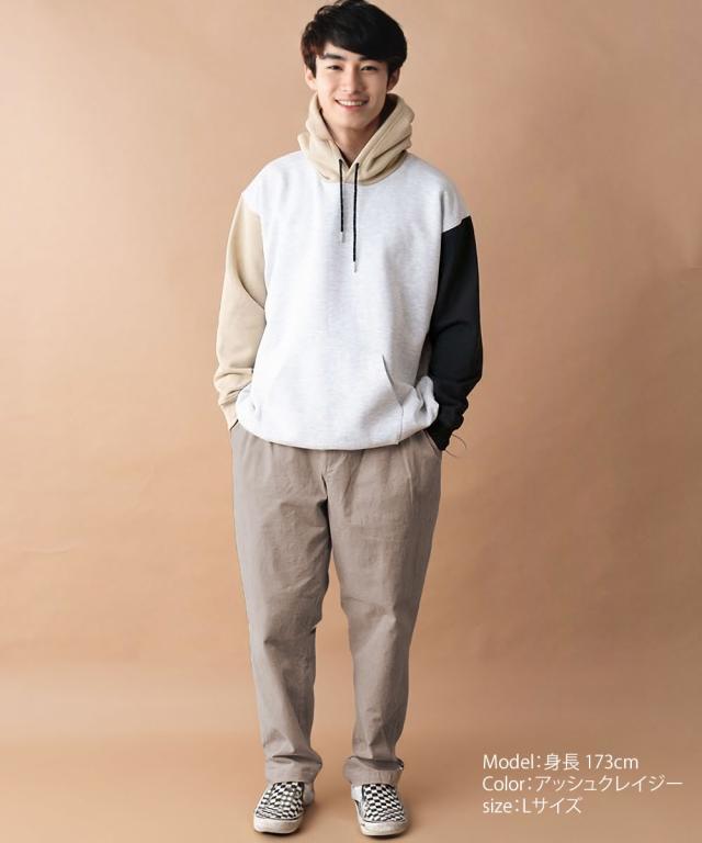 ゆったりラフに着る裏起毛スウェットプルパーカー。