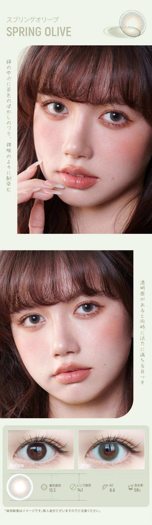 | 着色直径 | 12.9mm:スノーグレー 13.3mm:スプリングオリーブ/ミートブラウン/ラブピンク |