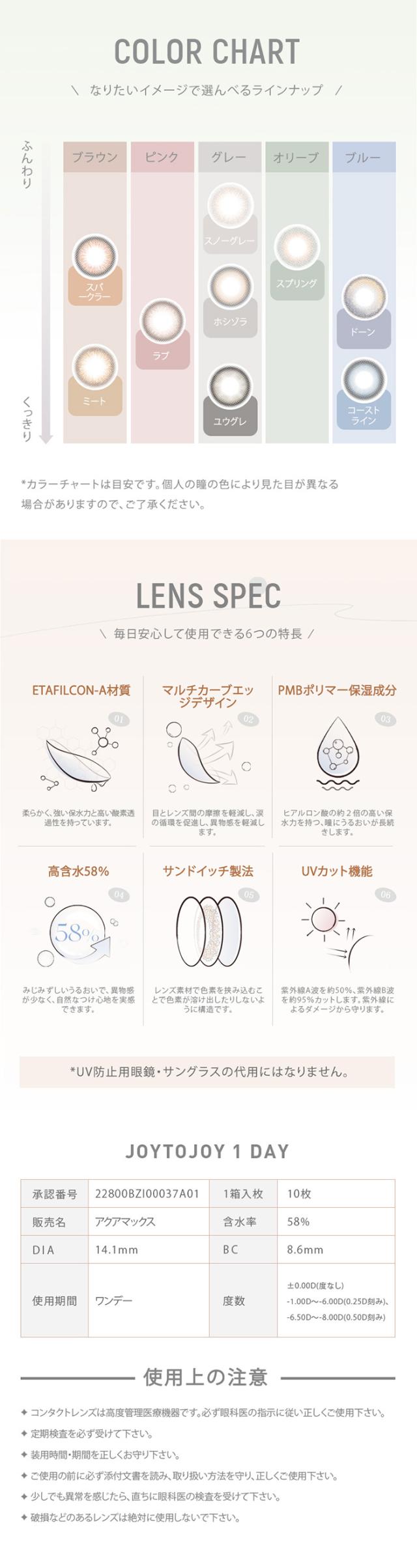 | 注意事項 | コンタクトレンズは高度医療管理機器です。必ず眼科医の検査・処方を受けてお求めください。 ご使用の前に必ず添付文書をお読み下さい。 |