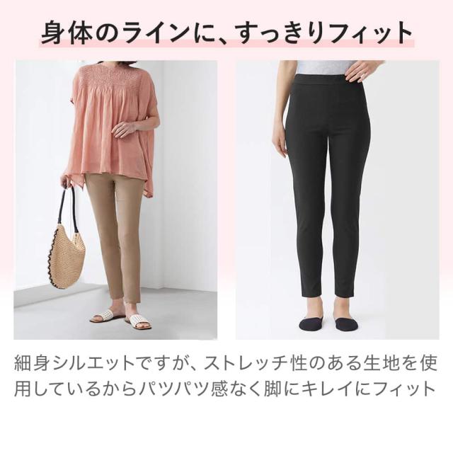 驚くほどよく伸びるストレッチ性とトップスを選ばないシンプルなデザインが人気の理由。