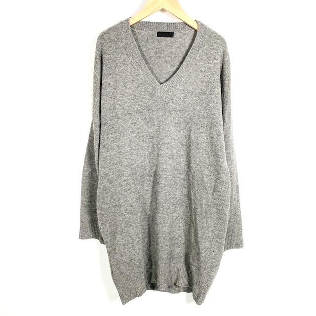 【中古】ジーヴィージーヴィー G.V.G.V ニットワンピース 長袖 ウール Vネック 無地 グレー 0/S56 レディース