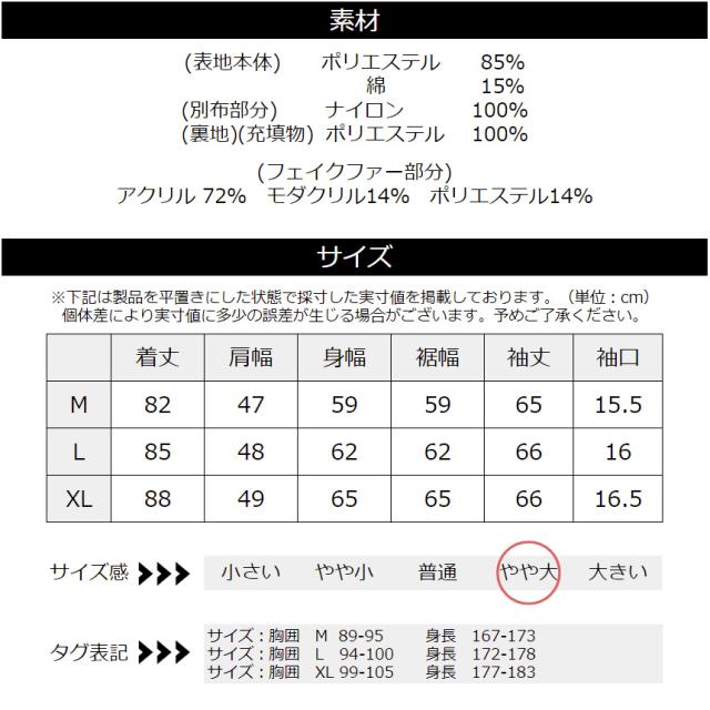 ウィンターコーデに映える取り外し可能なフードファー付きアウター WE7843 24aw M L LL XL