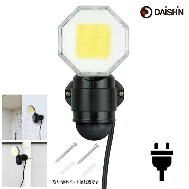 【 センサーライト コンセント式 屋外用 】大進 人感 LED AC 100V 1灯式 電源 防犯 ライト 外灯 防水規格 防雨型 人感センサーライト 外 人感センサー 駐車場 ガレージ 庭 玄関 灯 明るい 広範囲 ネジ止め 家庭用コンセント 明り 昼白色 軒下 物置 調整 白色 強力