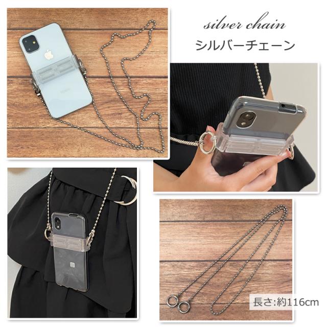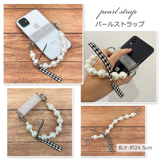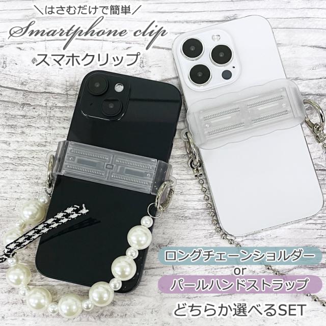 スマホクリップ ストラップホルダー クリップ式 ショルダーストラップ スマホショルダー パール シルバーチェーン 落下防止 送料無料 即納