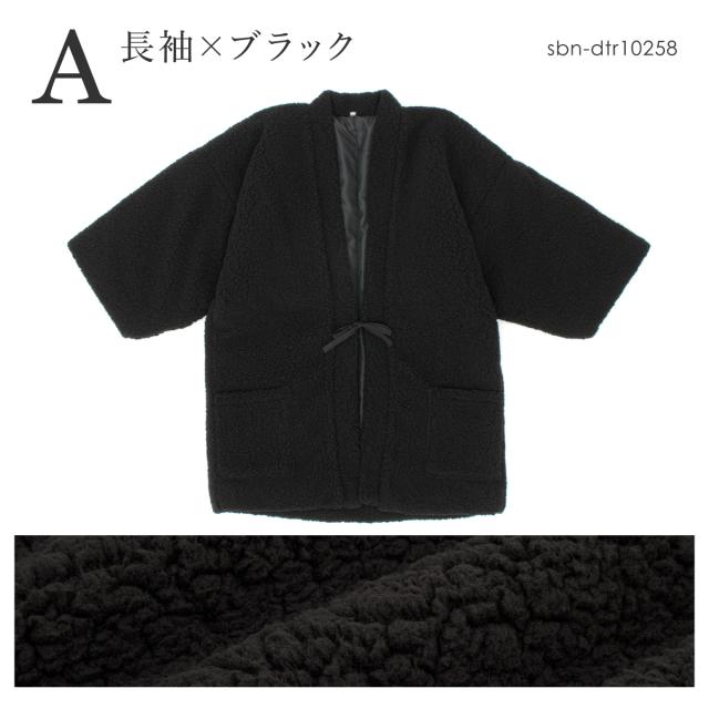 半纏 はんてん 男女兼用 ユニセックス メンズ レディース 綿入り ボア 無地 シンプル ブラック ブラウン グレー floro 創美苑オリジナル 部屋着 ポケット付き 長袖 M L 送料無料