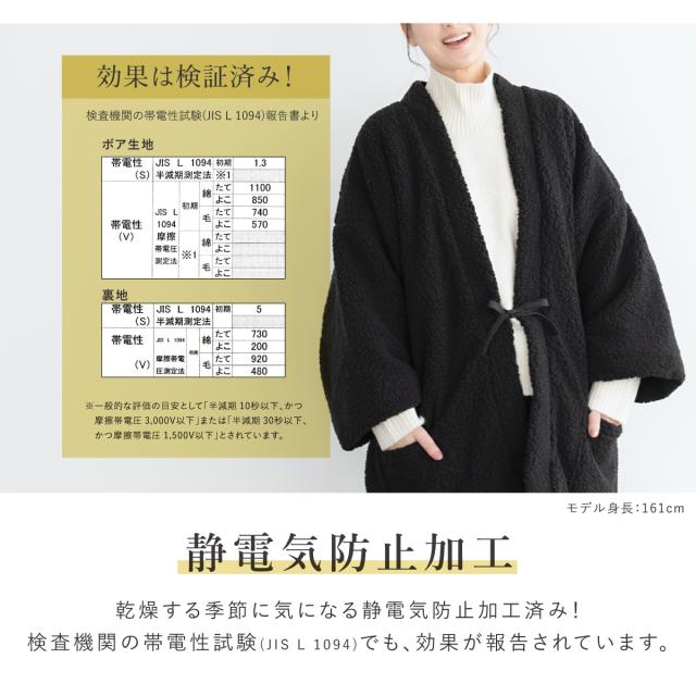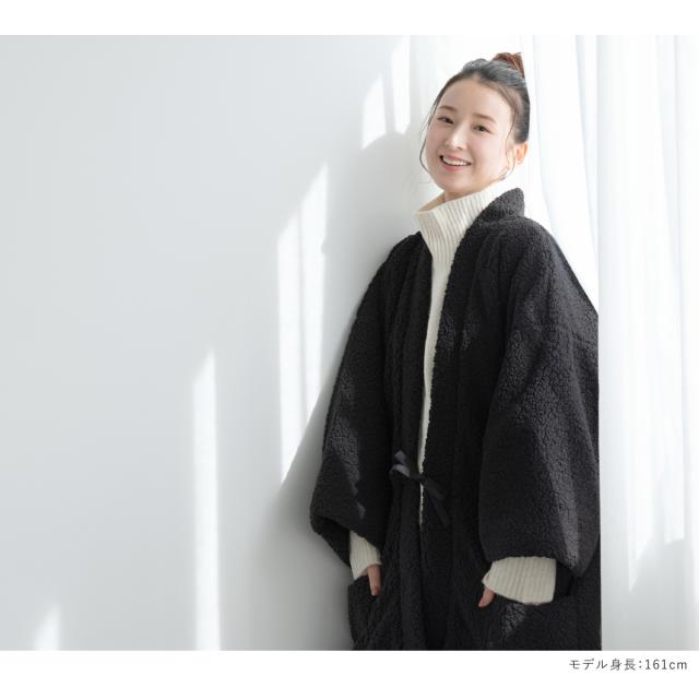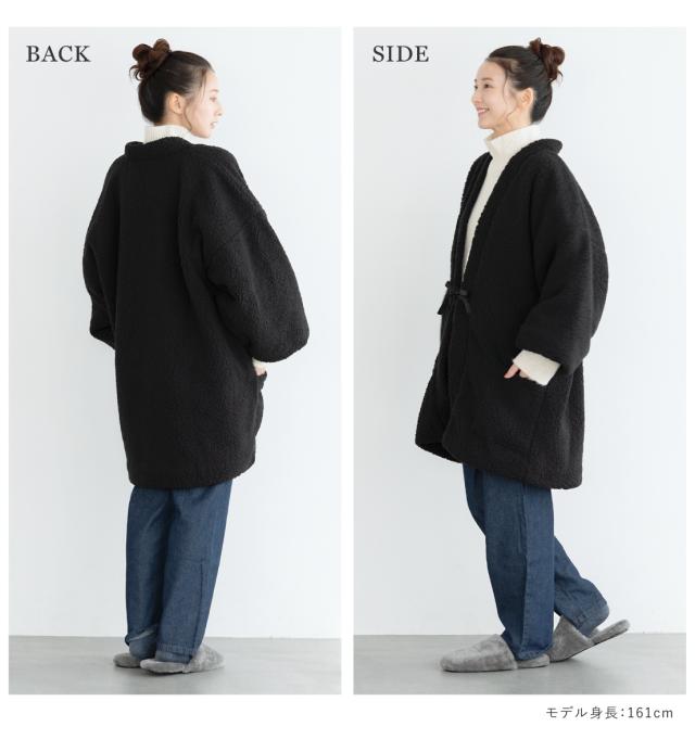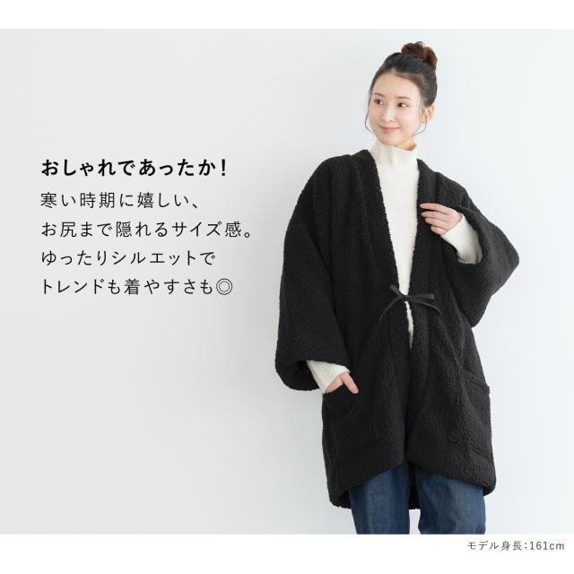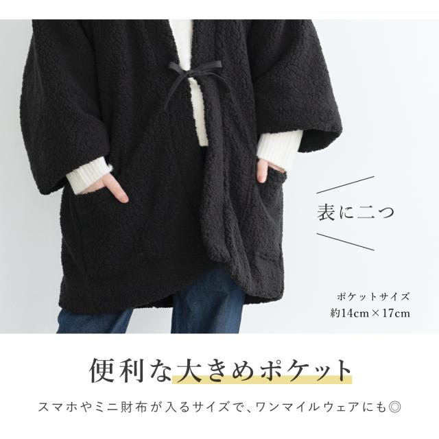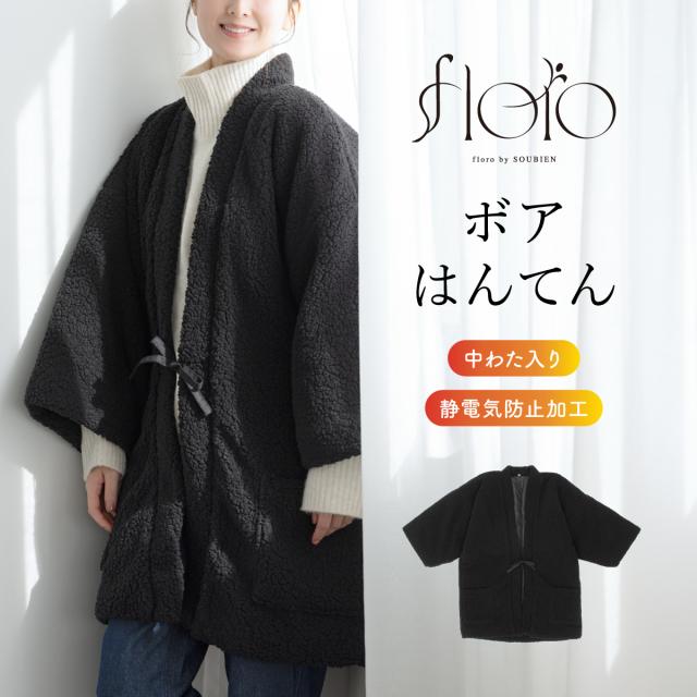はんてん おしゃれ 半纏 レディース メンズ 共用 長袖 ボア 防寒 あったか ルームウェア 部屋着 黒 ブラック floro 無地 M L 送料無料