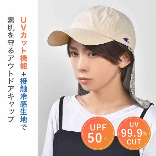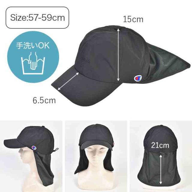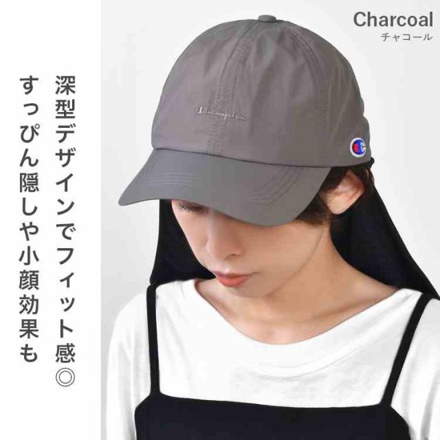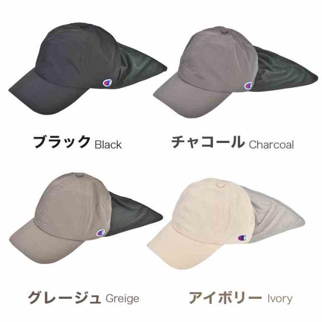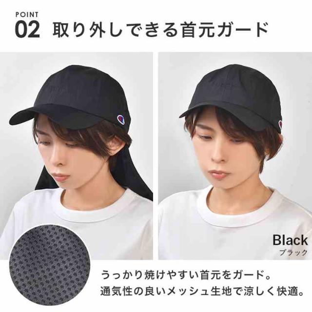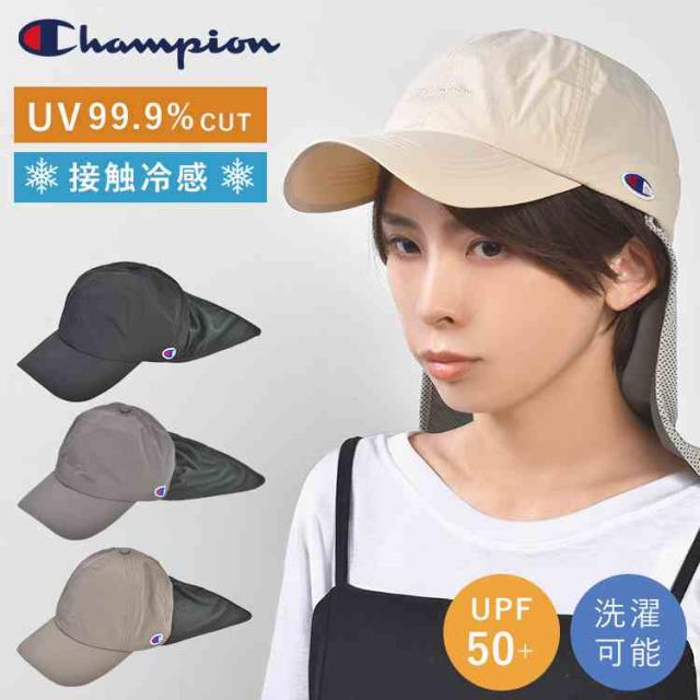 キャップ チャンピオン レディース UVカット Champion 帽子 深め 大きめ つば付き 首ガード付き UPF50+ 紫外線 日焼け 対策 防止 接触冷感 涼しい メッシュ 通気性 日よけ 帽子 57 58 59cm アウトドア 洗える サイズ調整 おしゃれ ブラック チャコール グレージュ アイボリー