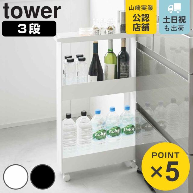 山崎実業 tower キャスター付きスリムワゴン タワー 3段 ( 4903208018043 タワーシリーズ スリムワゴン ワゴン スリムサイズ 隙間 すき間 隙間収納 収納 キッチンラック キッチンワゴン すき間収納 キッチン すきま収納 隙間収納 キッチン)