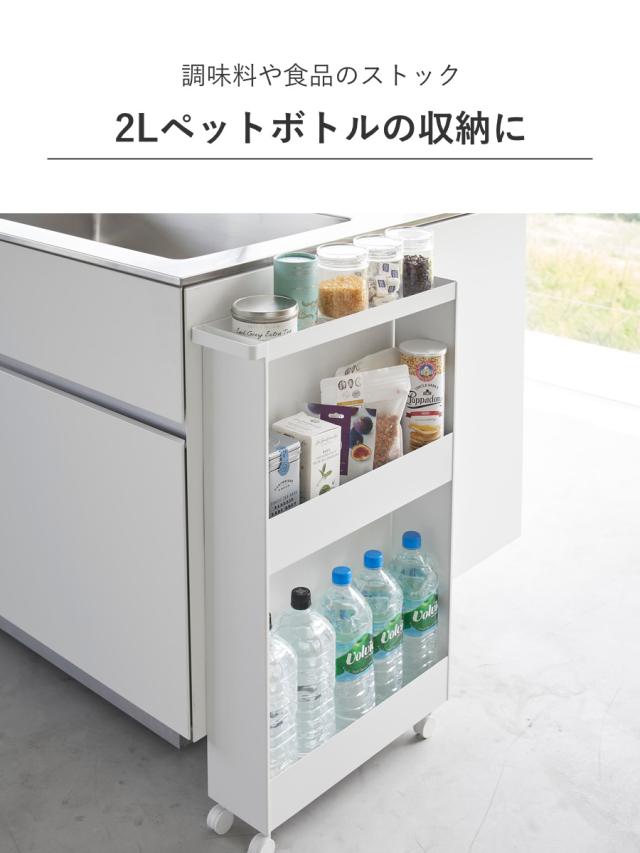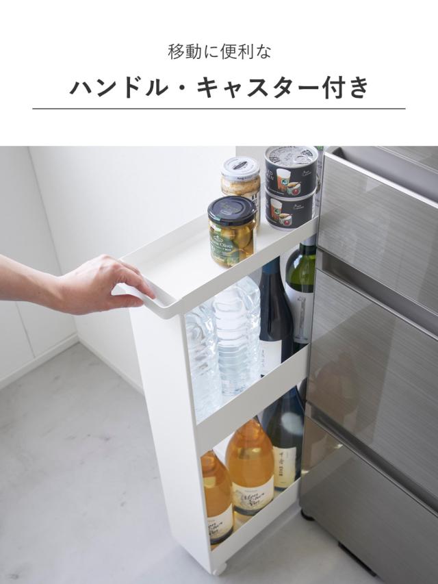幅13cmの隙間で使える、ハンドル付きのスリムワゴン3段です。家電や棚の隙間にぴったり収まりデッドスペースを有効活用できます。キッチンやランドリールームはもちろん、リビングや玄関にもおすすめです。